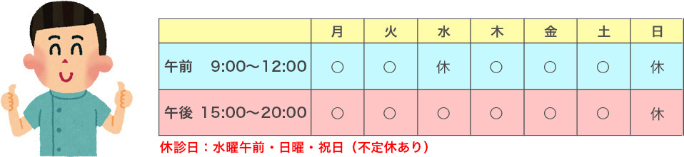 土曜日の診療も受付ておりますので比較的通院しやすい環境かと思います。