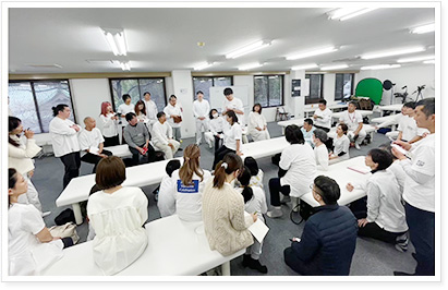 現在では、学ぶ立場から指導する立場にも変化しています。プロの施術家やセラピスト、医師や医療従事者が延べ1,500人以上受講している技術セミナーで、認定講師として技術指導をする活動をしています。