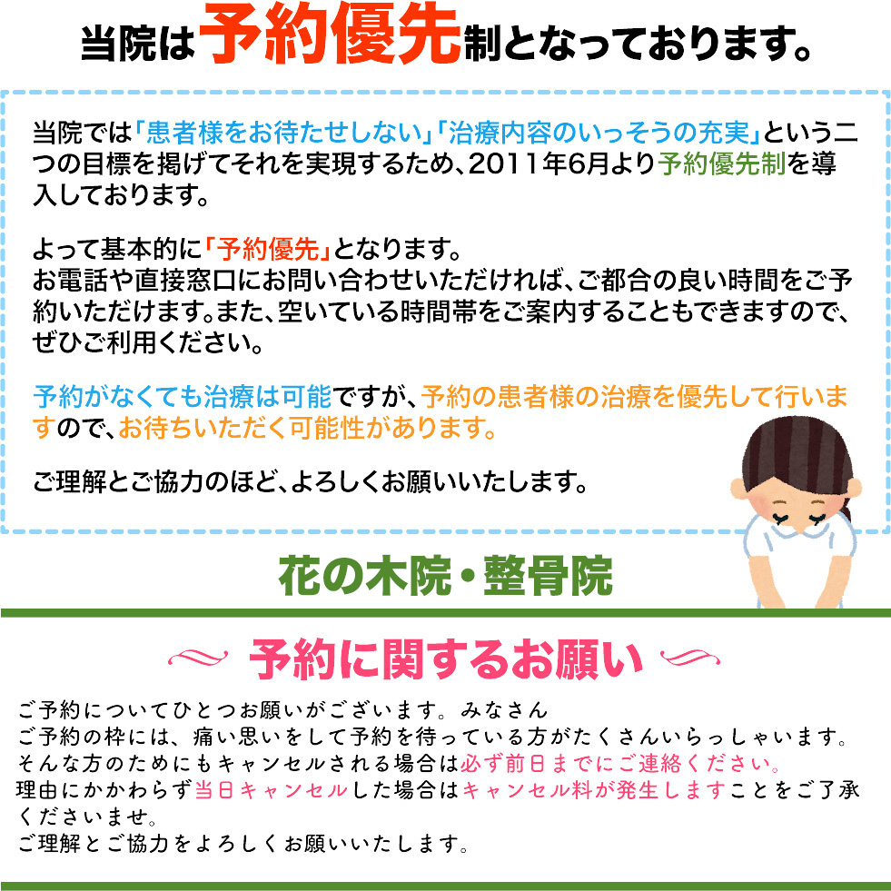少しでも痛みからいち早く解決するためにも全力で花の木整体院・整骨院はサポートをさせて頂きます。