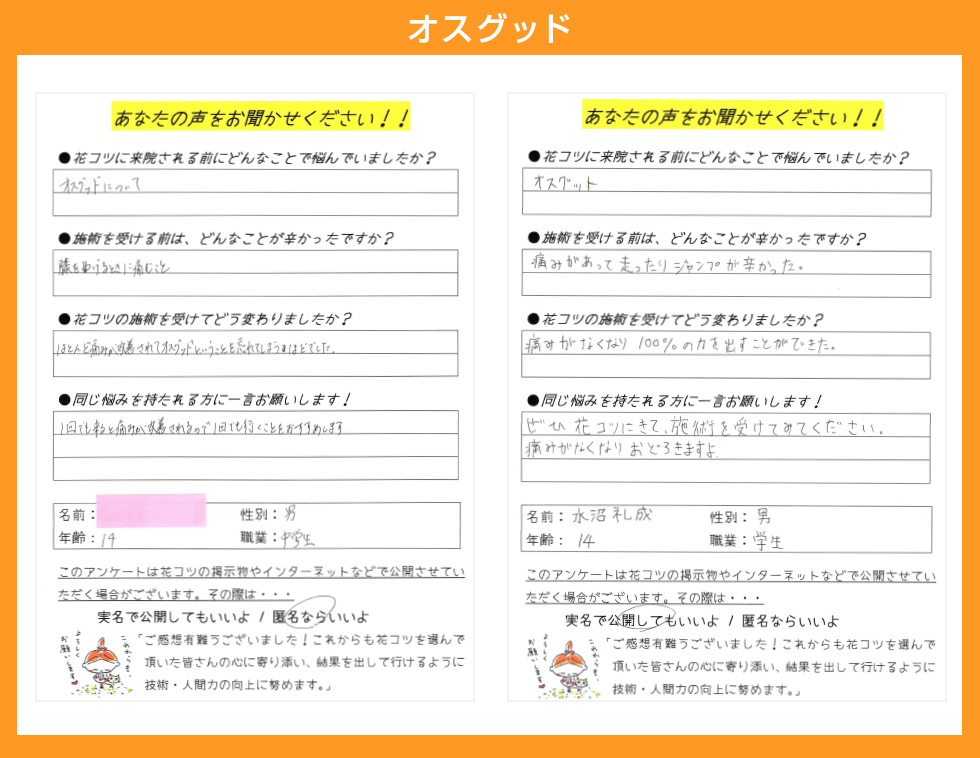 膝の痛み、オスグット治療なら花の木整体院・整骨院にお任せください。
